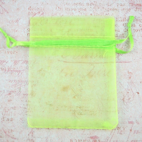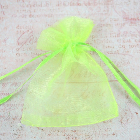 Woreczek z organzy w kolorze jaskrawo zielonym o długość około 8,8 cm ,szerokość około 6,5 cm.