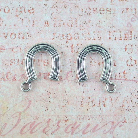 Zawieszka dwustronna w kolorze srebrnym podkówka , o wymiarach 17 x 12 x 1,7 mm