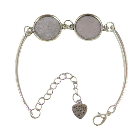 Baza bransoletki w kolorze srebrnym do wklejenia 2 kaboszonów  o średnicy 20 mm , długość całkowita bransoletki 25 cm.