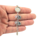 Baza bransoletki do wklejenia  3 kaboszonów o średnicy 12 mm, w kolorze srebrnym , długość całkowita bransoletki 21 cm, bransoletka wykończona 5 zawieszkami  w kształcie rozgwiazdy , muszli , serca.