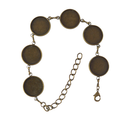 Baza bransoletki do wklejenia 6 kaboszonów o średnicy 18 mm, w kolorze starego złota , długość całkowita bransoletki 29 cm,
