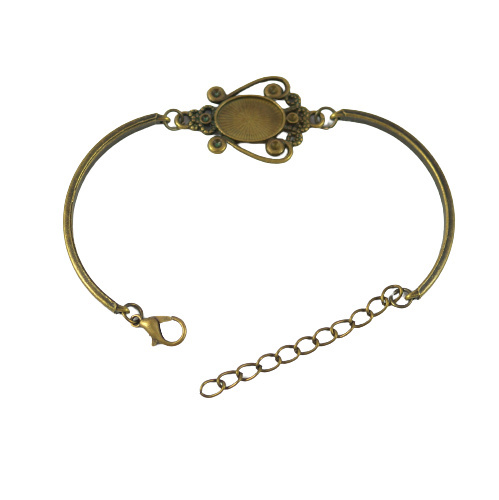 Baza bransoletki w kolorze starego złota do wklejenia kaboszona owalnego 10x14 mm. Długość całkowita bransoletki 18 cm .