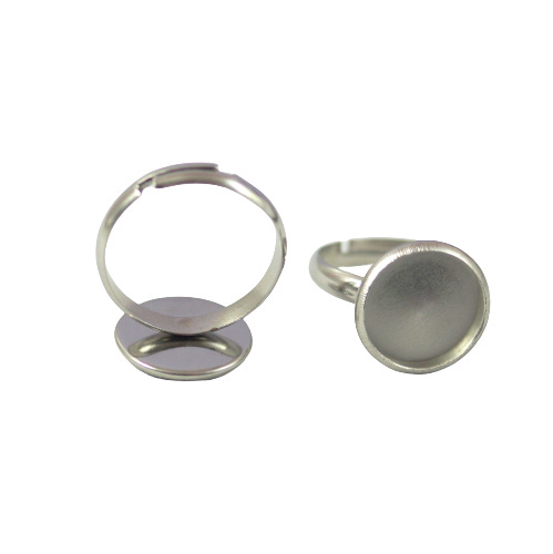 Baza pierścionka do kaboszona w kolorze stalowym , wykonana z metalu bezołowiowego ,średnica wewnętrzna talerzyka 12 mm, średnica pierścionka 17 mm (do regulacji).