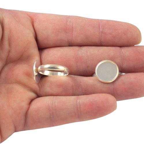 Baza pierścionka do kaboszona w kolorze srebrnym , wykonana z metalu bezołowiowego ,średnica wewnętrzna talerzyka 12 mm, Średnica pierścionka 17mm (do regulacji).