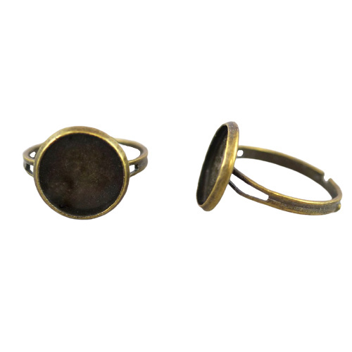 Baza pierścionka w kolorze starego złota , wykonana z metalu bezołowiowego ,średnica wewnętrzna talerzyka 12 mm,średnica pierścionka 18 mm (do regulacji).
