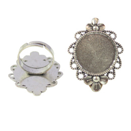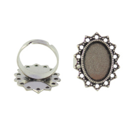 Baza pierścionka w kolorze starego złota , wykonana z metalu bezołowiowego ,średnica wewnętrzna talerzyka 20 mm, średnica pierścionka 18 mm (do regulacji). Wymiar zewnętrzny 37x28 mm.