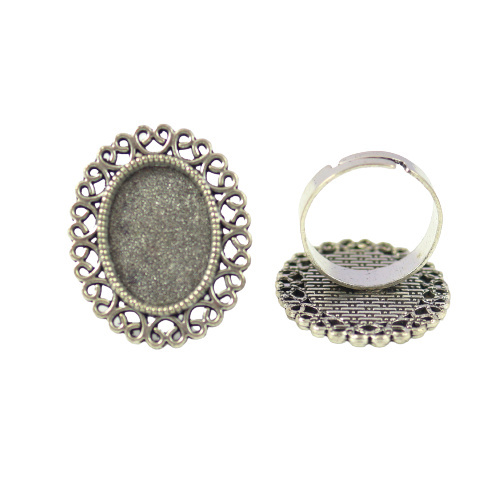 Baza pierścionka do kaboszona owalnego w kolorze srebrnym , wykonana z metalu bezołowiowego , wymiar do kaboszona 18x13 mm , średnica pierścionka 18 mm (do regulacji).