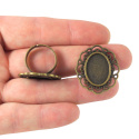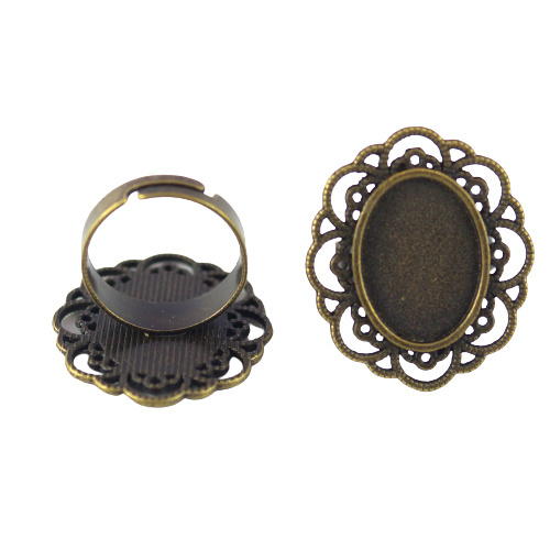 Baza pierścionka do kaboszona owalnego w kolorze starego złota , wykonana z metalu bezołowiowego , wymiar kaboszona 18x13 mm , średnica pierścionka 17 mm (do regulacji).
