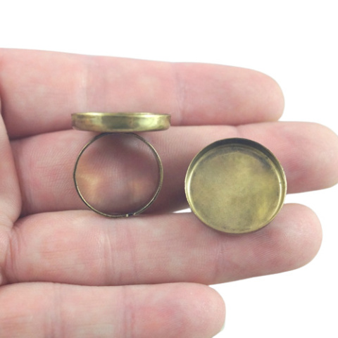 Baza pierścionka do kaboszona okrągłego 20 mm, w kolorze starego złota , wykonana z metalu bezołowiowego , średnica pierścionka 17 mm (do regulacji).