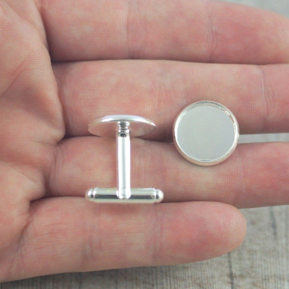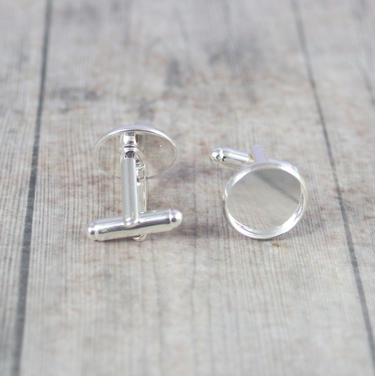 Oprawy do spinek do mankietów na kaboszon 14 mm w kolorze srebrnym o długości 19 mm cena za parę