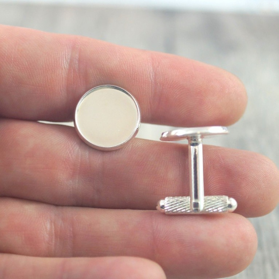 Baza spinek do mankietów na kaboszon 14 mm ,w kolorze srebrnym o wysokości 19 mm , ozdobne karbowane zapięcie , cena za parę.