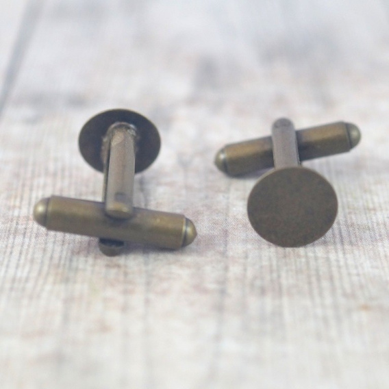Baza spinek do mankietów tarcza 10 mm w kolorze starego złota o długości 23 mm, cena za parę.