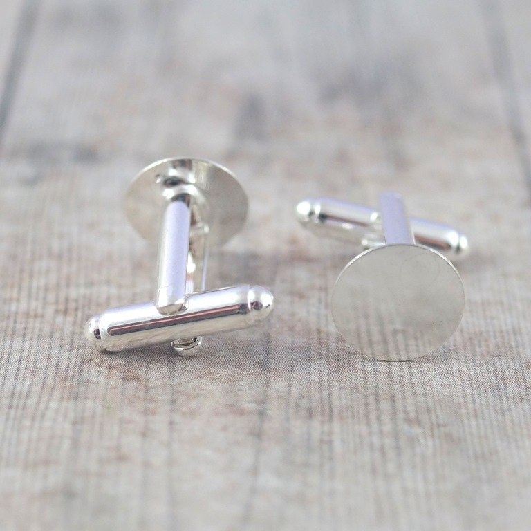 Oprawy do spinek do mankietów tarcza 12 mm w kolorze srebrnym o długości 17,5 mm, cena za parę.