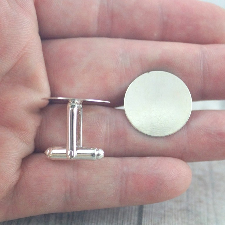 Oprawy do spinek do mankietów tarcza 20 mm, w kolorze srebrnym o długości 17,5 mm cena za parę.
