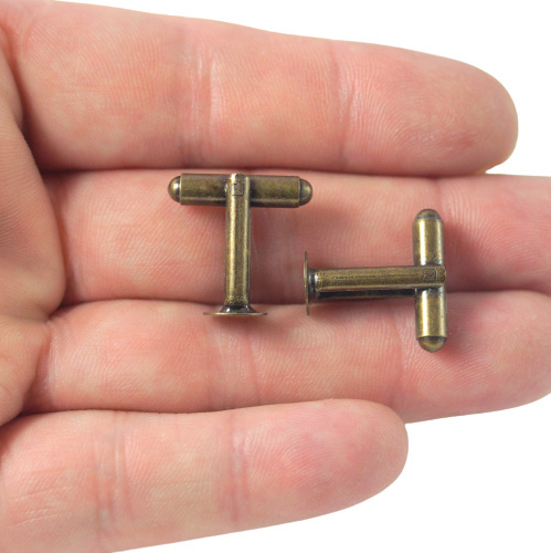 Baza spinek do mankietów tarcza 6 mm w kolorze starego złota o długości 17,5 mm, cena za parę.