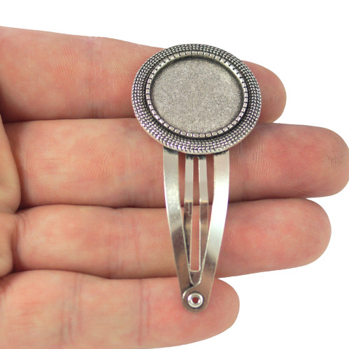 Baza spinki do włosów pod kaboszon 20 mm, w kolorze starego srebra o długości 59 mm.
