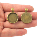 Baza wisiorka do kaboszona w kolorze starego złota o średnicy 20 mm, średnica zewnętrzna 22 mm.