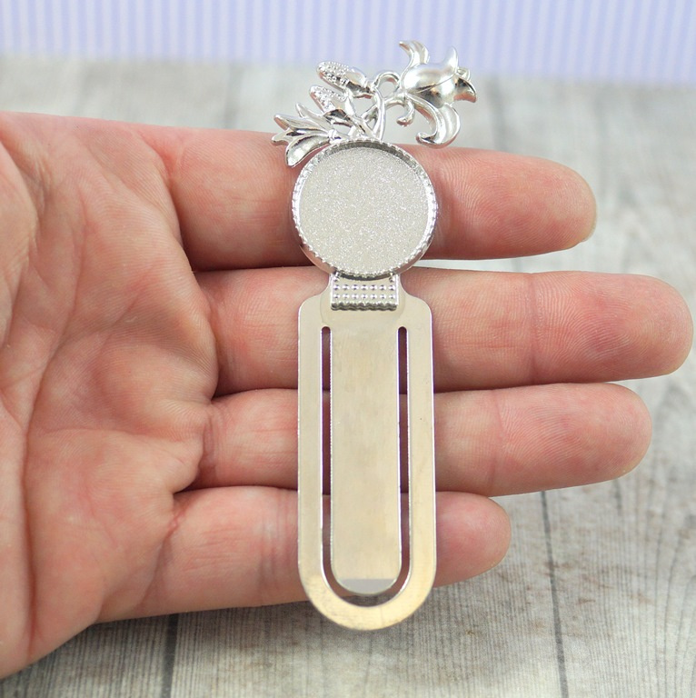 Baza zakładki do książki pod kaboszon 20mm w kolorze srebrnym o długości 92 mm.