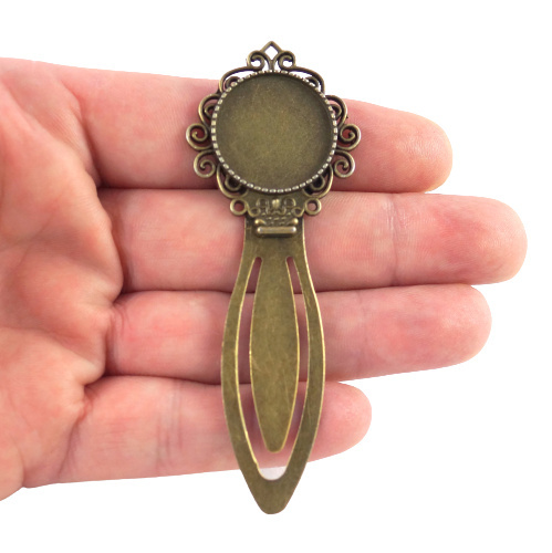 Baza zakładki do książki pod kaboszon 20 mm, w kolorze starego złota o wymiarach 82x31 mm .