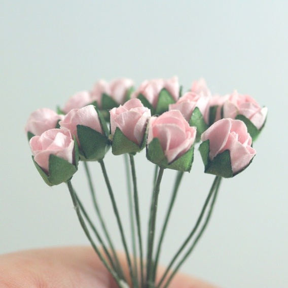 Bukiecik jasnoróżowych różyczek o wymiarach pączka :około 13x10 mm , nadają się idealnie do wypełniania kaboszonów szklanych cena za 5 sztukę .