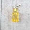 Zawieszka miś mini w kolorze cytrynowym wykonany z żywicy o wymiarach 25x12x10 mm , posiada wkrętkę i karabińczyk 10 mm ( gotowy charms )