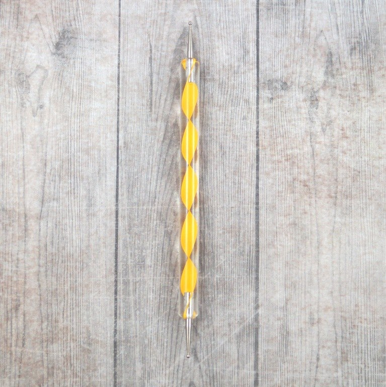 Dłuto kulkowe dwustronne w kolorze żółtym  o dwóch prostych końcówkach o średnicy 1,5 mm i 1 mm . Całkowita długość dłuta 132 mm .
