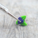Dłuto kulkowe dwustronne z ozdobnym uchwytem (wypełnionym kuleczkami) o dwóch prostych końcówkach o średnicy 2,5 mm i 1,5 mm . Całkowita długość dłuta 126 mm . Doskonałe narzędzie do pracy z modeliną.