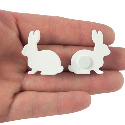 Drewniana samoprzylepna ozdoba Wielkanocna zajączek biały o wymiarach 29x27x5 mm cena za 1 szt.