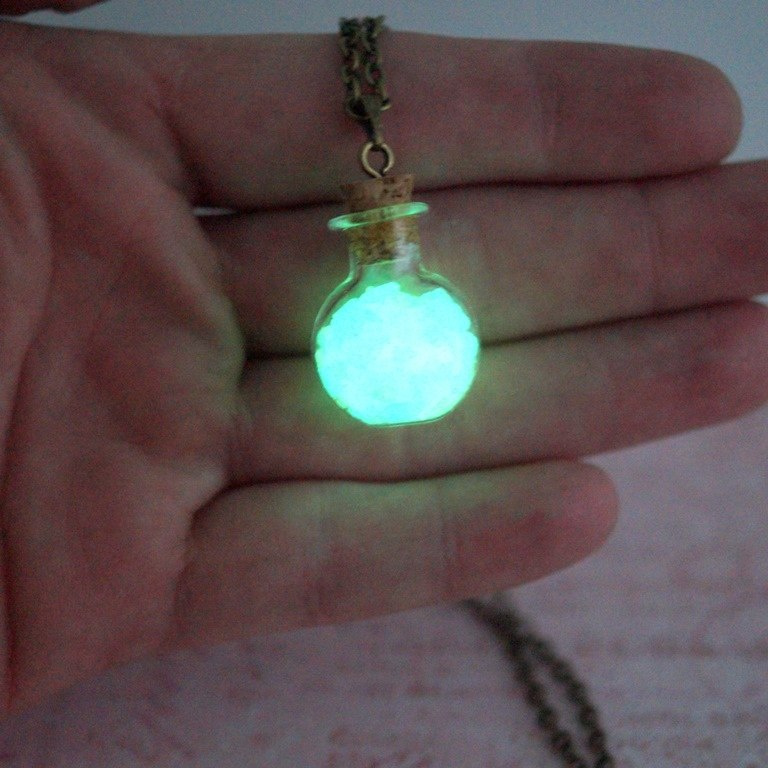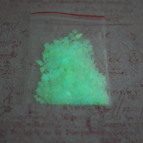 ŚWIECI W KOLORZE JASKRAWEJ ZIELENI PO NAŚWIETLENIU