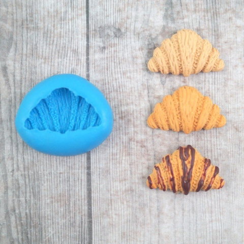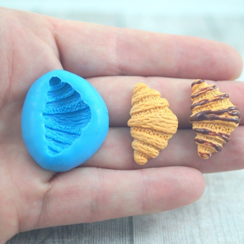 Foremka rogalik francuski ( croissant)- wykonana ręcznie z silikonu forma mini rogalika , przeznaczona do modeliny , wosku , mydła. Gotowy rogalik można udekorować polewą. Wymiary rogalika 27x16x7 mm. . Foremkę można wypiekać razem z modeliną w piekarniku.