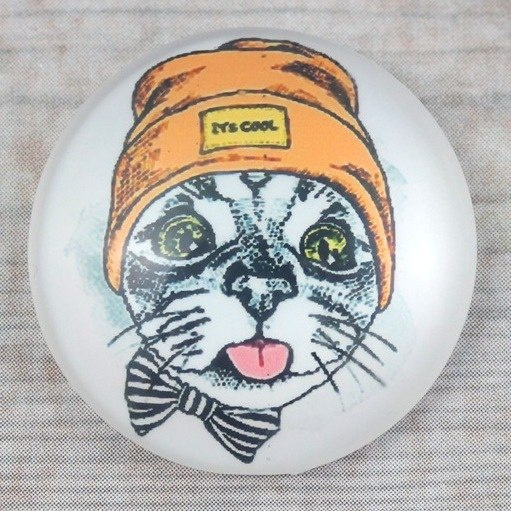 Kaboszon szklany KOT W CZAPCE o wymiarach 25x7 mm.