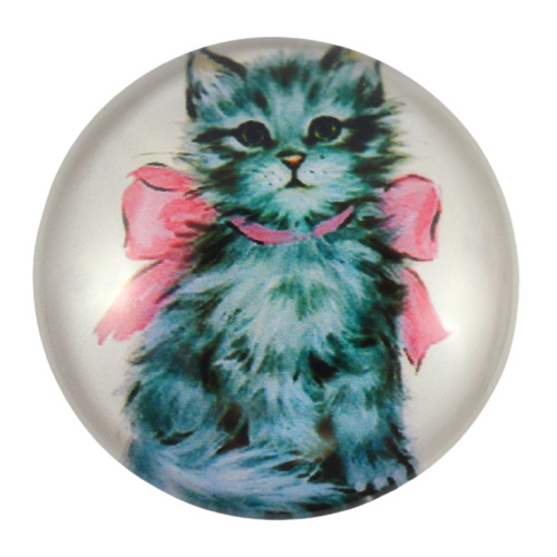 Kaboszon szklany kot z kokardą o średnicy 12 mm.