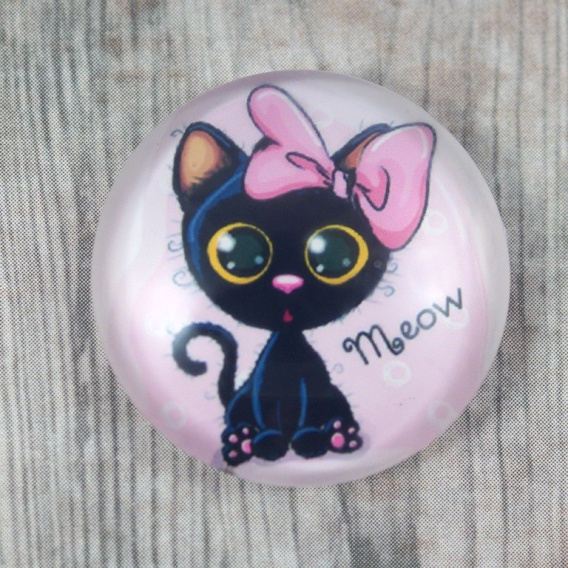 Kaboszon szklany kotek z kokardką o wymiarach 12x3 mm.