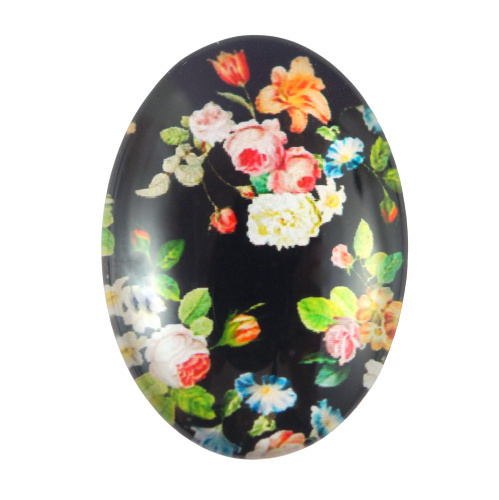 KABOSZON SZKLANY OWALNY KWIATY 18x25 mm.