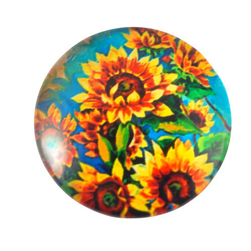 Kaboszon szklany słoneczniki o wymiarach 25x7 mm.