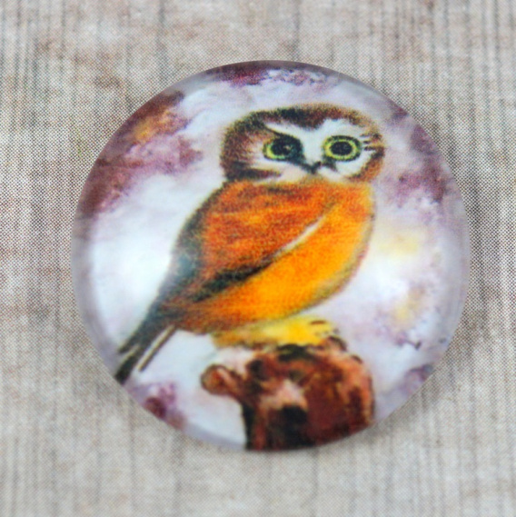Kaboszon szklany sowa o wymiarach 25x7 mm.