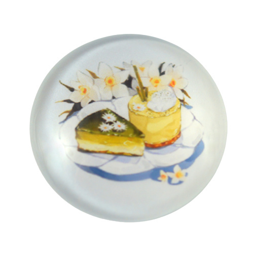Kaboszon szklany waniliowy serniczek o wymiarach 20x7 mm.