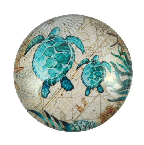 Kaboszon szklany dwa żółwie o wymiarach 25x7 mm.
