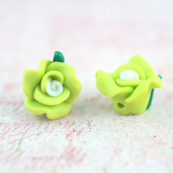 • KORALIK FIMO- KWIATEK RÓŻA JASNO ZIELONA