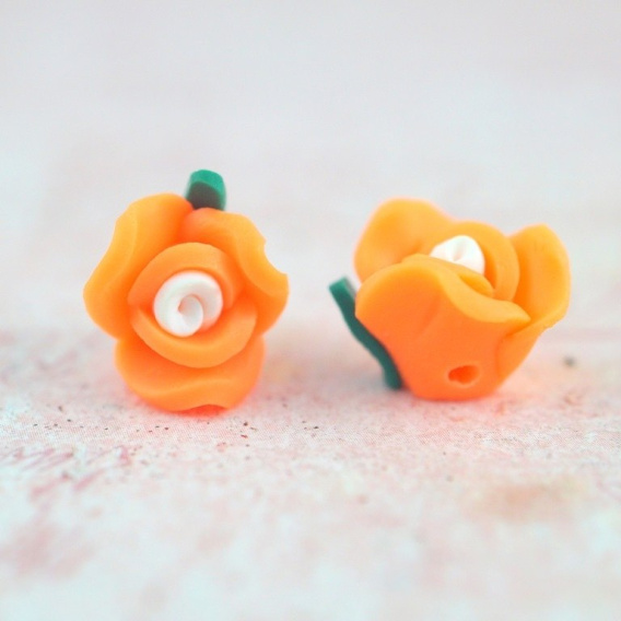 KORALIK FIMO- KWIATEK RÓŻA POMARAŃCZOWA