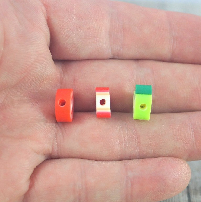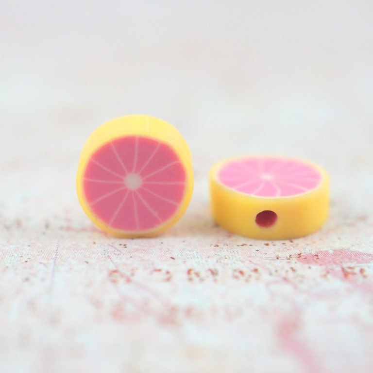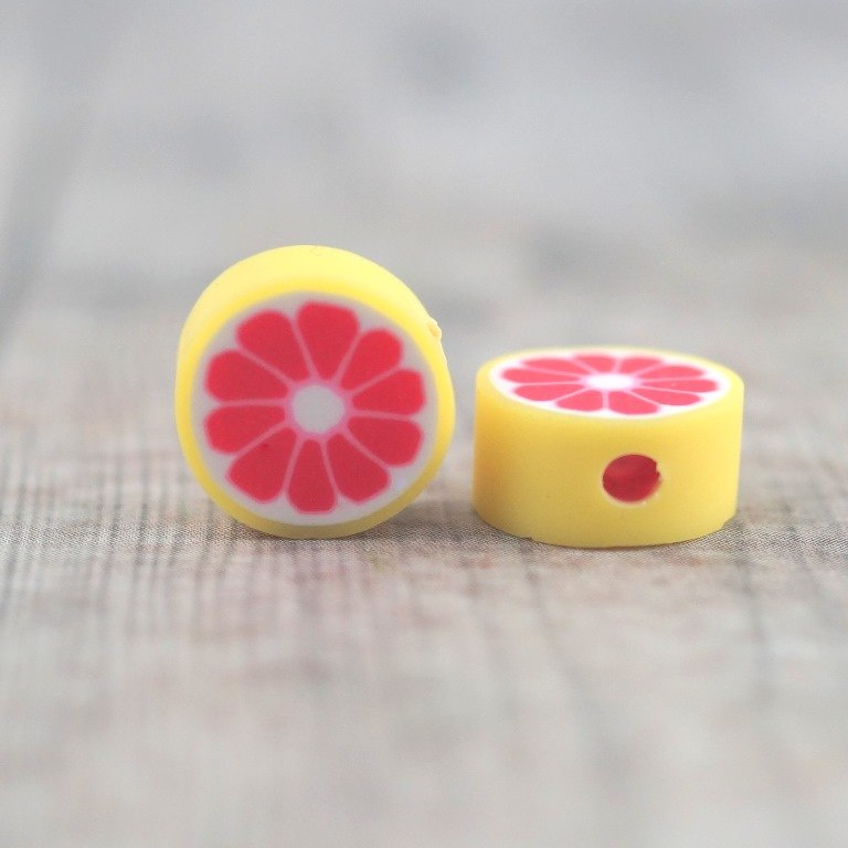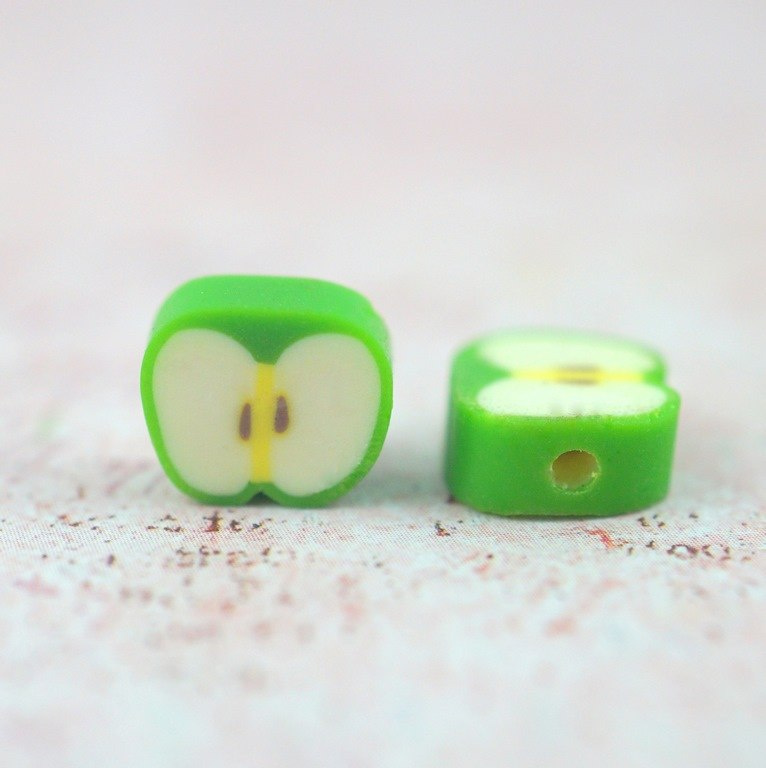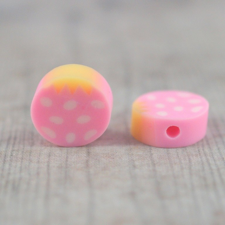 Koralik z modeliny FIMO  mix kolorowych i smacznych owoców 30 szt. (jabłka,truskawki,pomarańcze,mango ,cytryna ,kiwi,,arbuz,ogórek,pomidor ,poziomka...)średnica około 10 mm,grubości 4-5 mm cena za 30 sztuk (koraliki posiadają otwór do nawlekania o średnicy 1,5 mm )