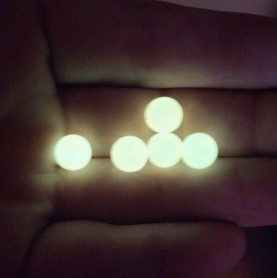 Koraliki fluorescencyjne RÓŻOWE  , wykonane z plastiku , średnica 8 mm , średnica otworu 1,4 mm , Po naświetleniu świecą w ciemności (w kolorze BIAŁYM ) cena za 5 szt.