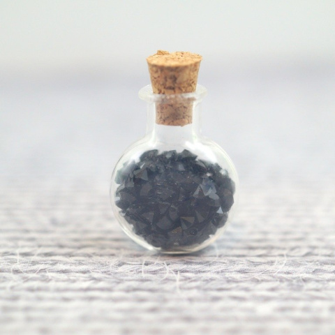 Akrylowe kryształki w kolorze czarnym o wymiarze 3 mm.( mogą posłużyć jako miniaturowy lód owocowy do wypełniania buteleczek ,fiolek lub deserów )
