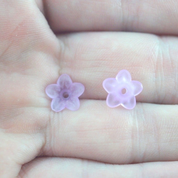 Kwiatek akrylowy w kształcie niezapominajki w kolorze jasnofioletowym ,o wymiarach 9,7x9,7x4,4 mm, cena za 15 sztuk.