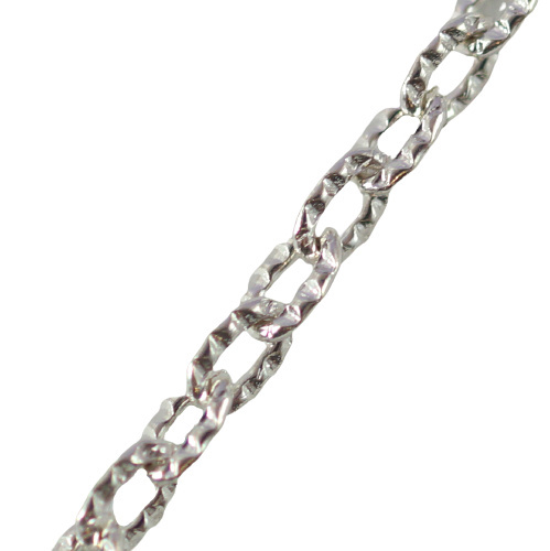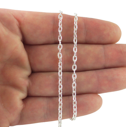 Łańcuszek w kolorze srebrnym wykonany ze stopu bezołowiowego , wymiar ogniwa 4,3x2,8x0,6 mm.