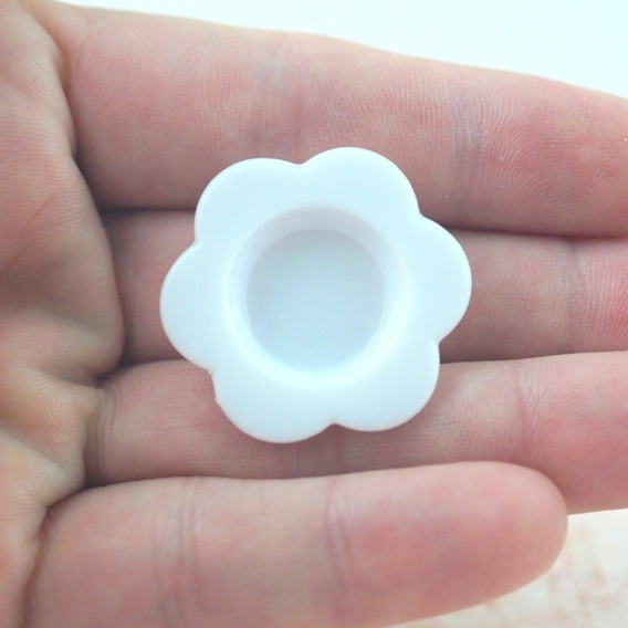 Mini talerzyk plastikowy biały w kształcie kwiatka o wymiarach 30x30x5mm