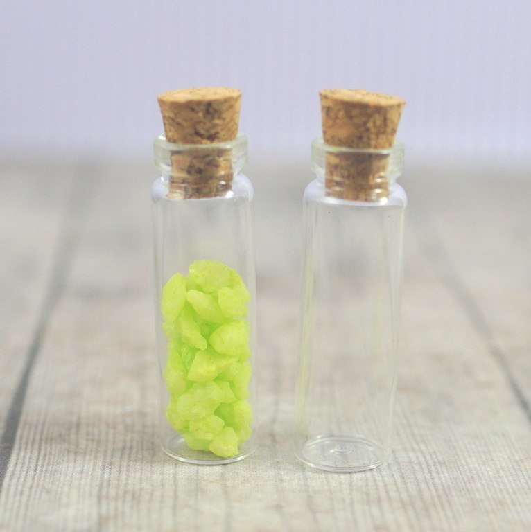 Mini buteleczka szklana o wymiarach: 11x35 mm. cena za 1 szt.