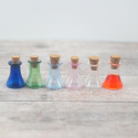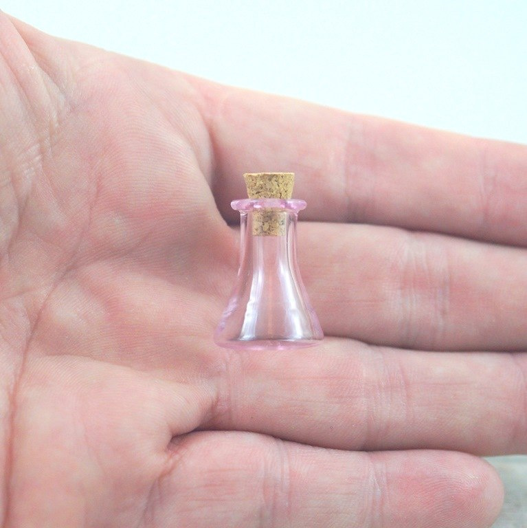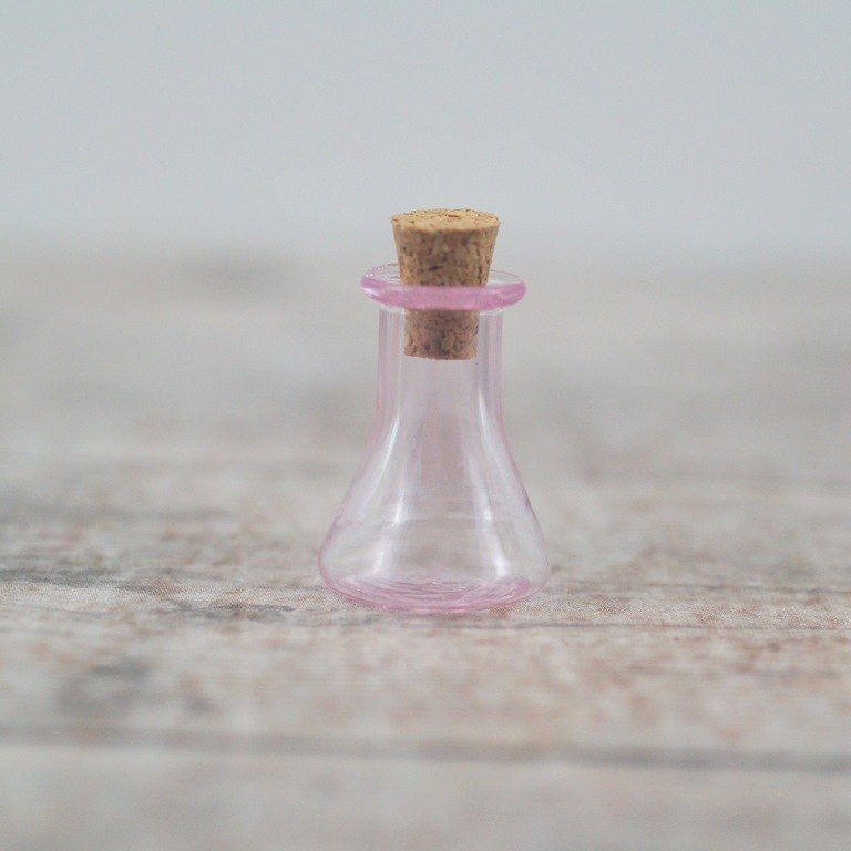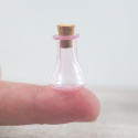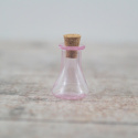 Mini buteleczka szklana różowa -flakonik na eliksir , wysokość bez korka 20 mm , dolna średnica 16 mm , średnica otworu 5 mm cena za 1 sztukę .