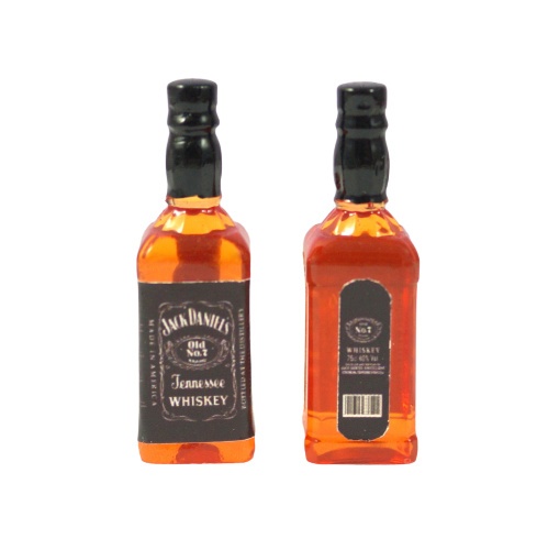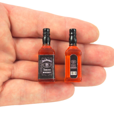 Miniaturowa butelka whisky wykonana z żywicy , o wymiarach : 37x11x11 mm. Bardzo realistycznie wykonana naklejka , miniatura do domku dla lalek skala 1:12. Cena za 1 szt.