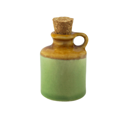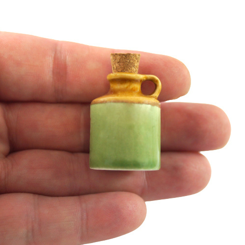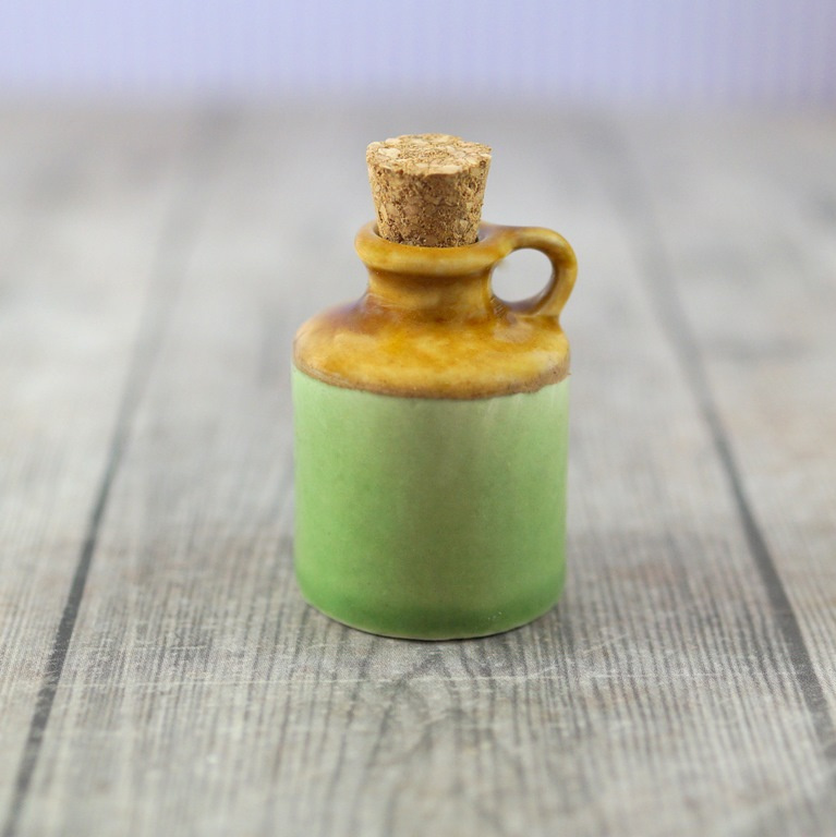 Mini ceramiczny dzban na wino z korkiem, bardzo realnie wykonana miniatura , wysokość z korkiem 33 mm , średnica 22 mm. Skala domku dla lalek 1:12.